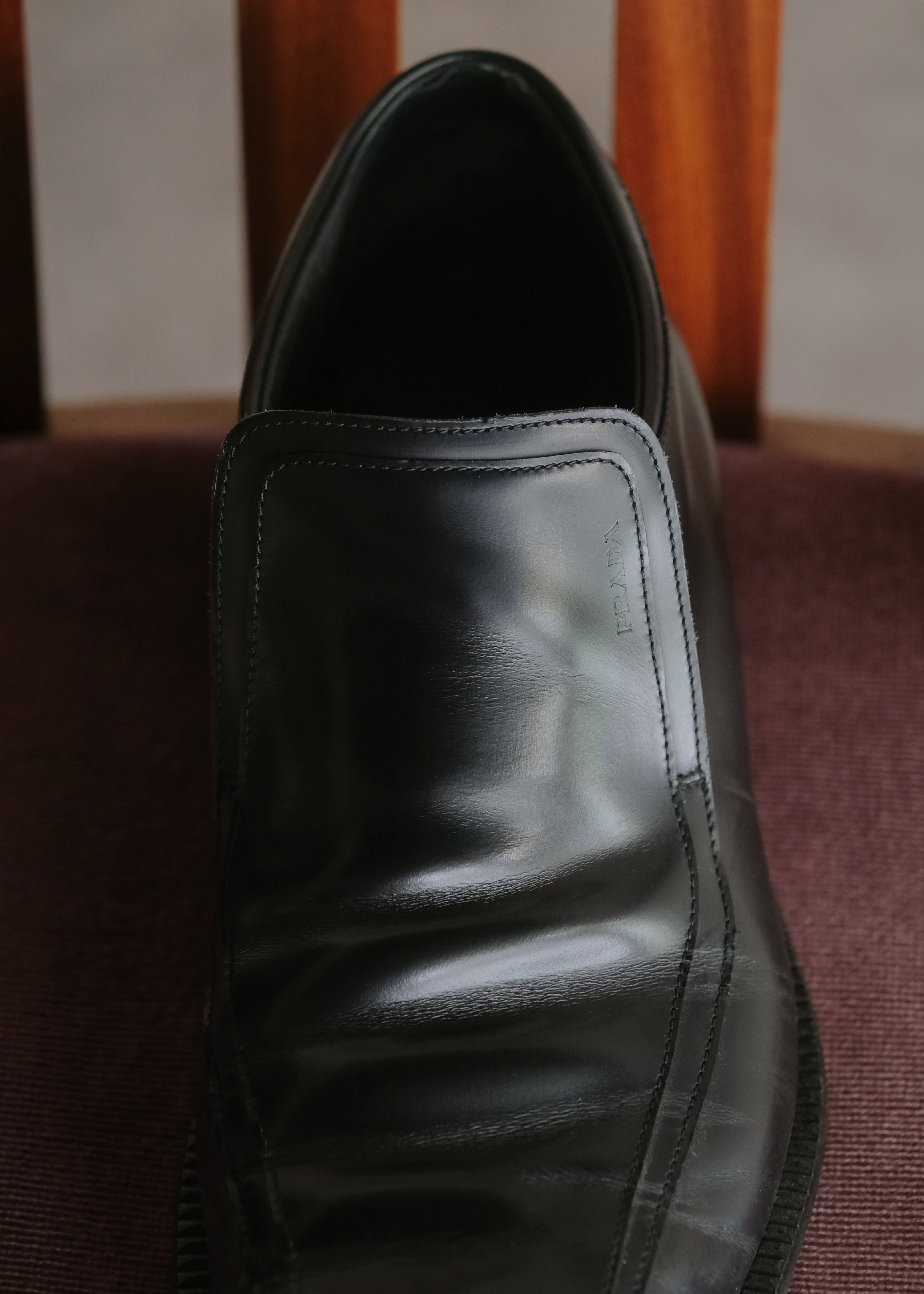 PRADA 00AW square toe leather slip-on