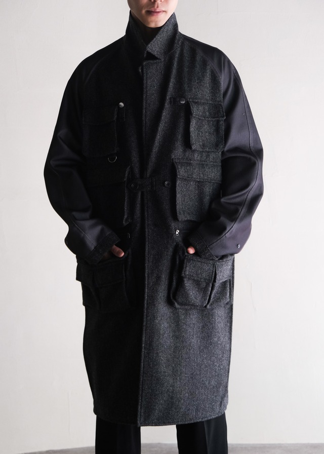 PHENIX by TKMT TYPE P-002A wool tweed balmacaan coat / Black