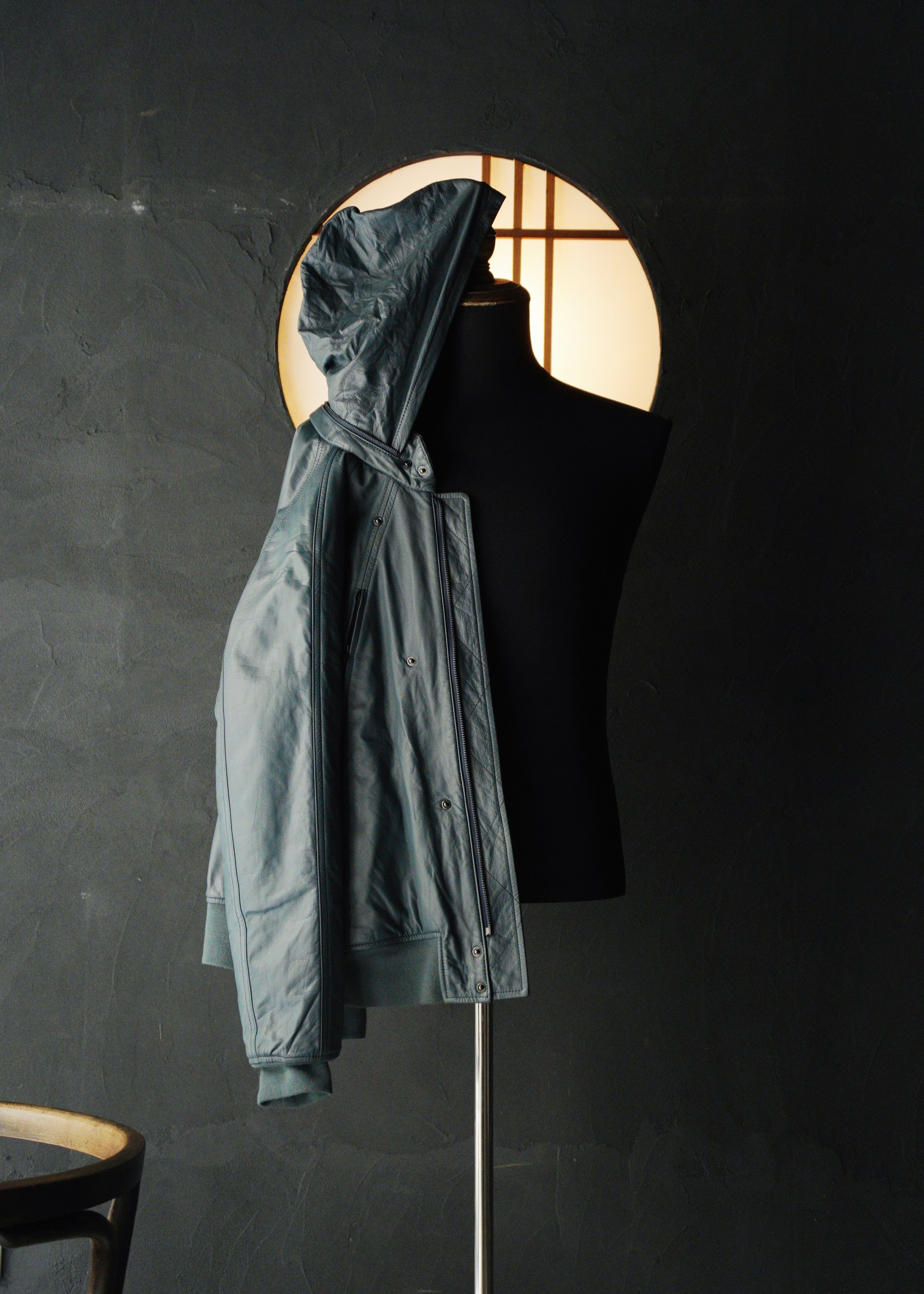 10’s LEMAIRE hooded cow leather jacket