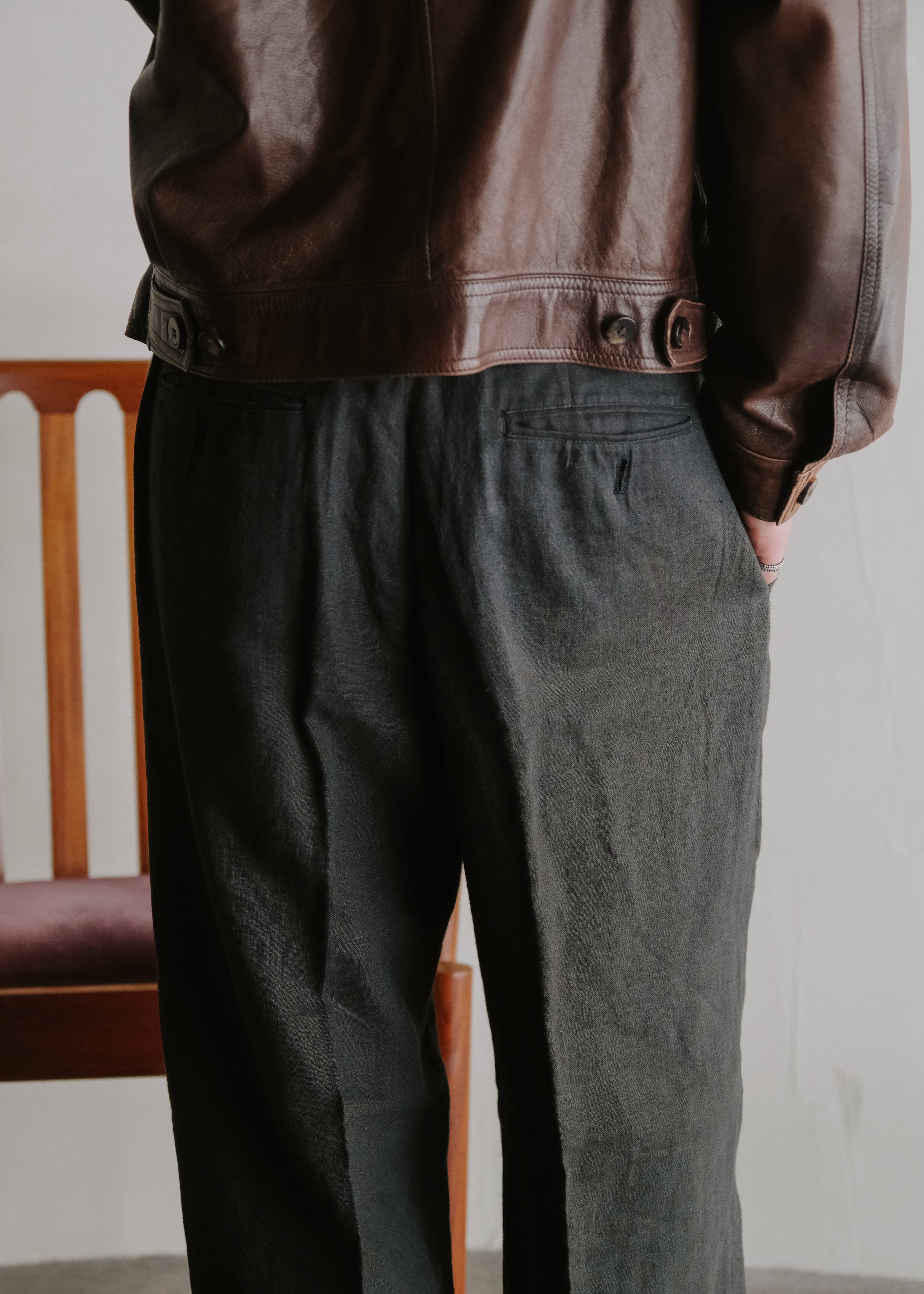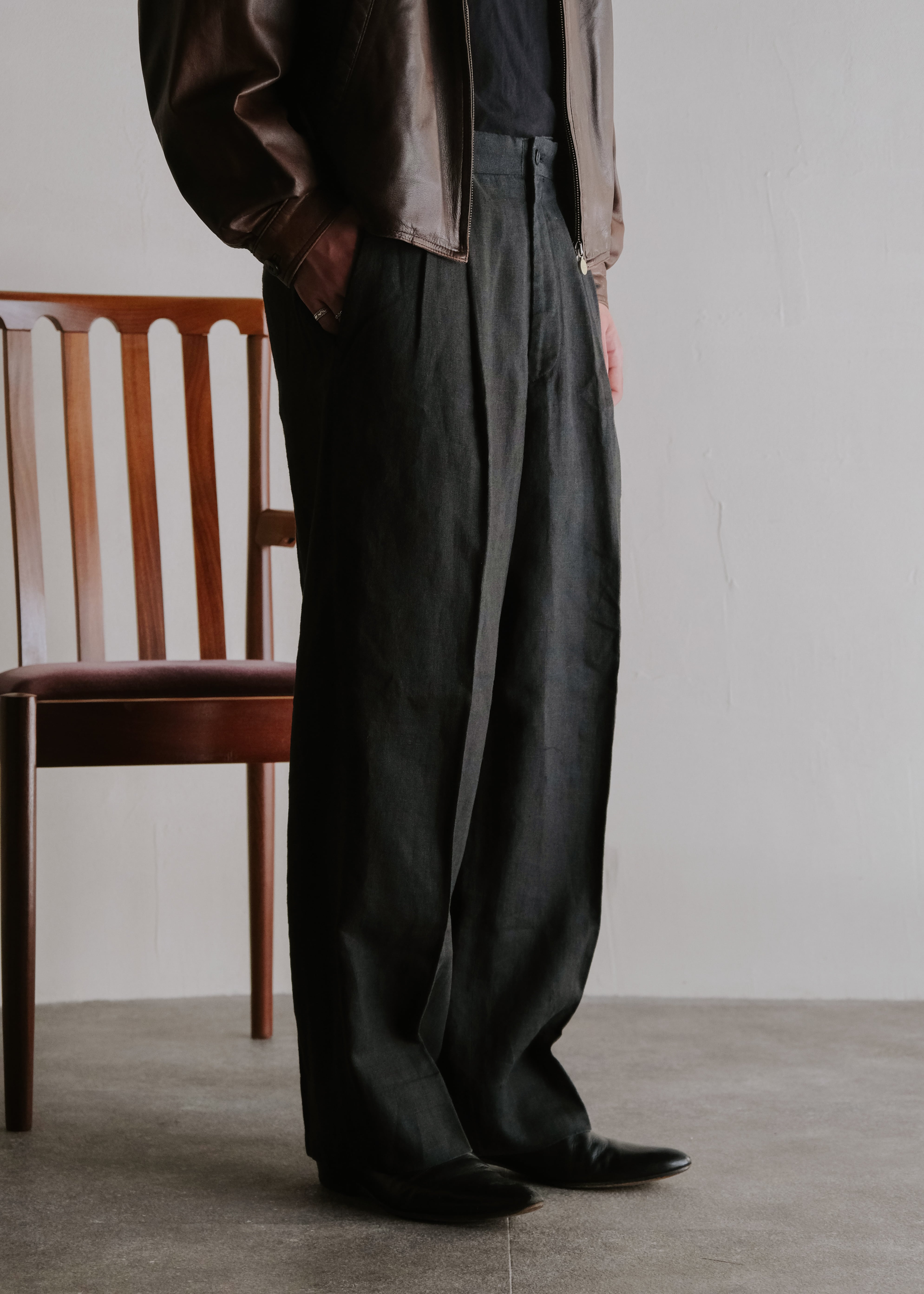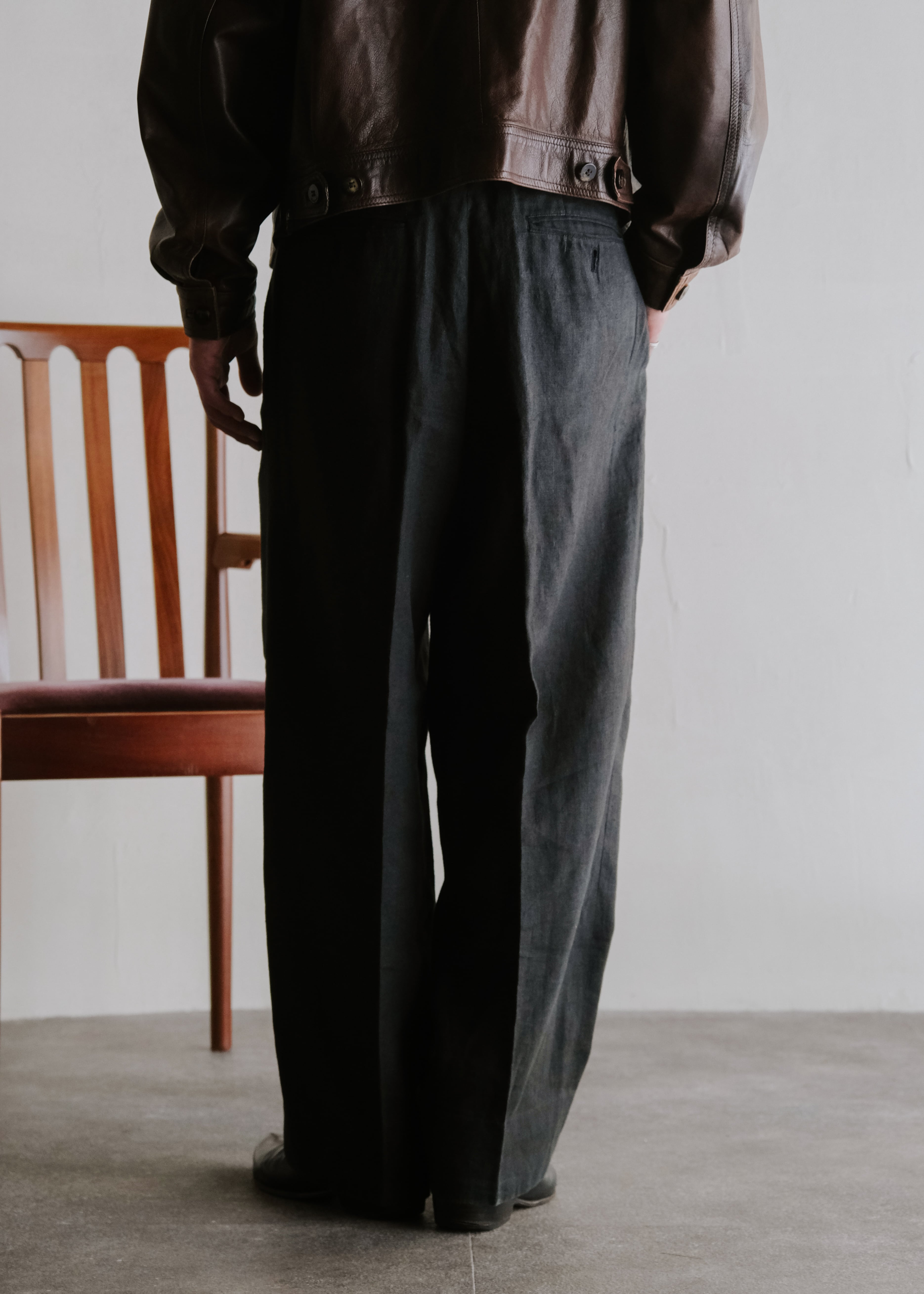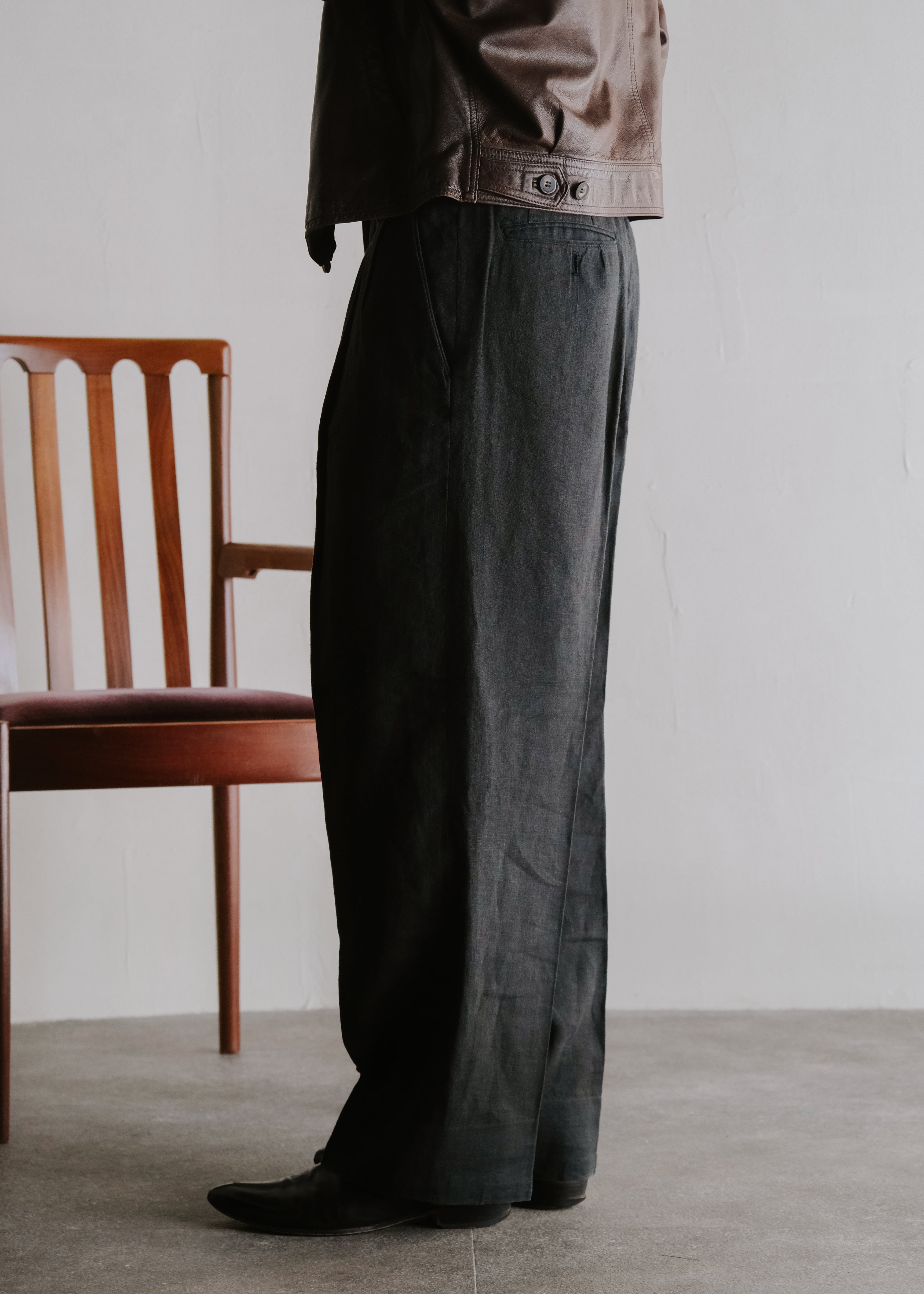 ISSEY MIYAKE MEN 87SS 2 tucked wide tapered linen trousers