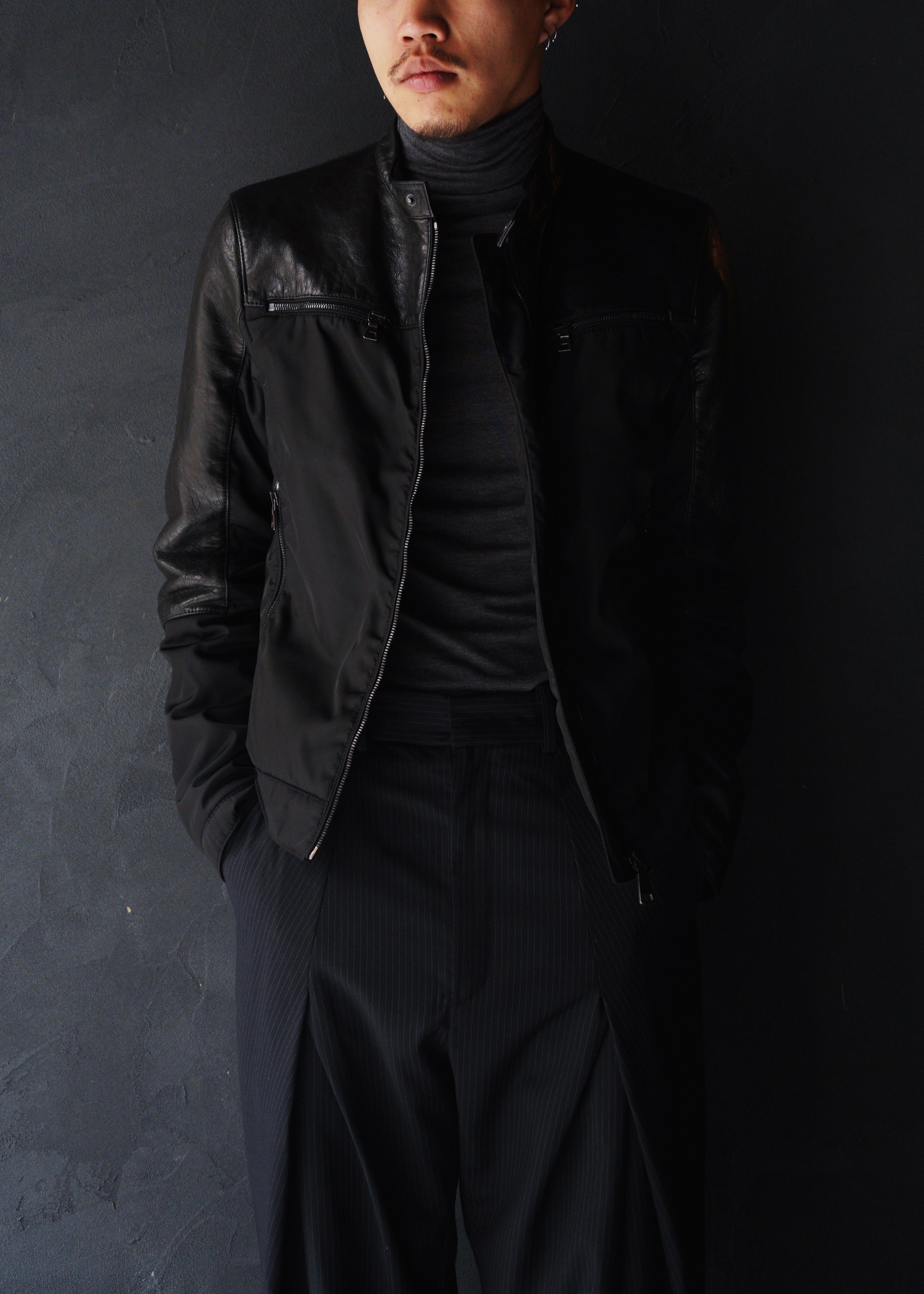 PRADA 11AW lamb skin switching blouson