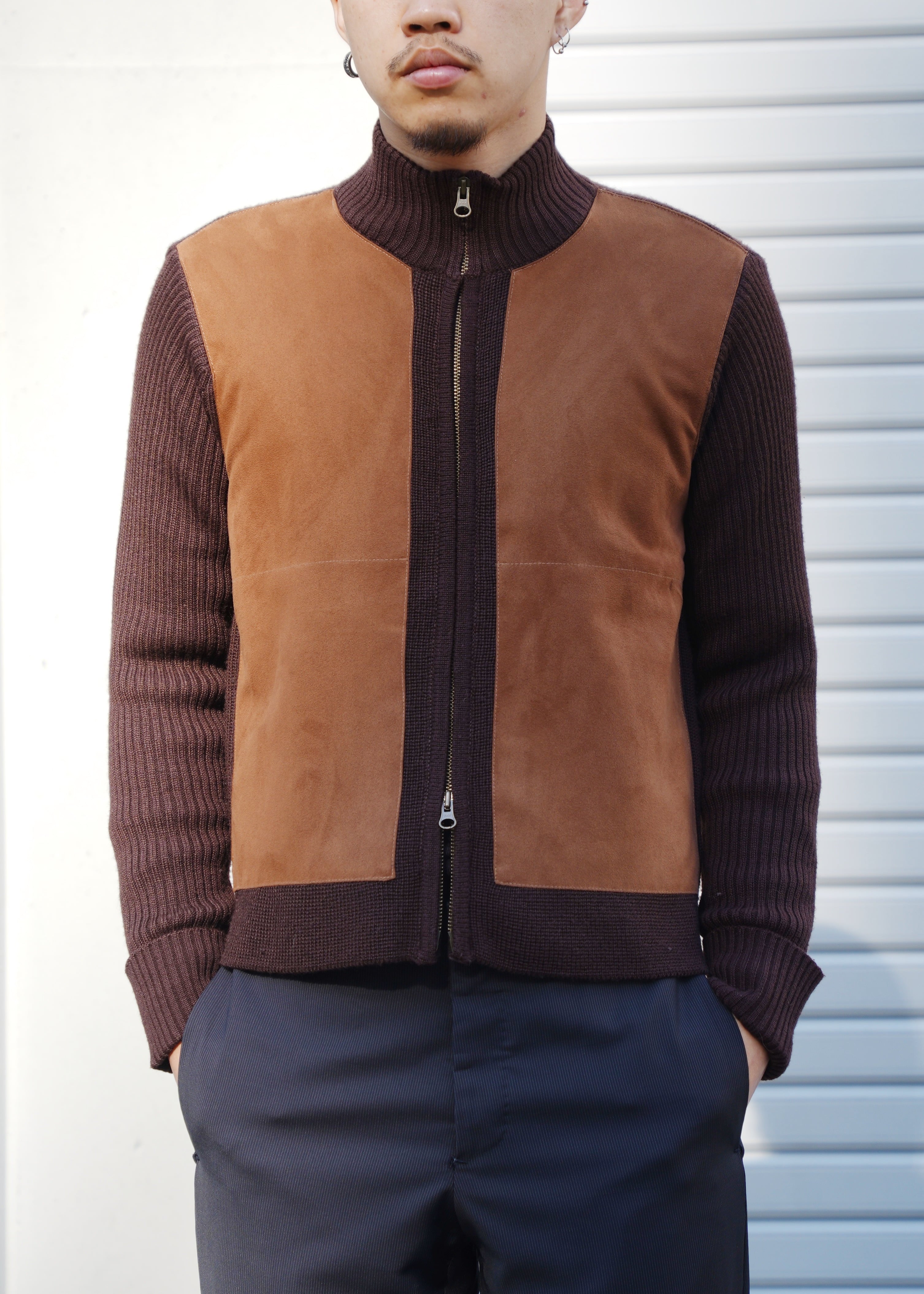 switching wool double zip knit