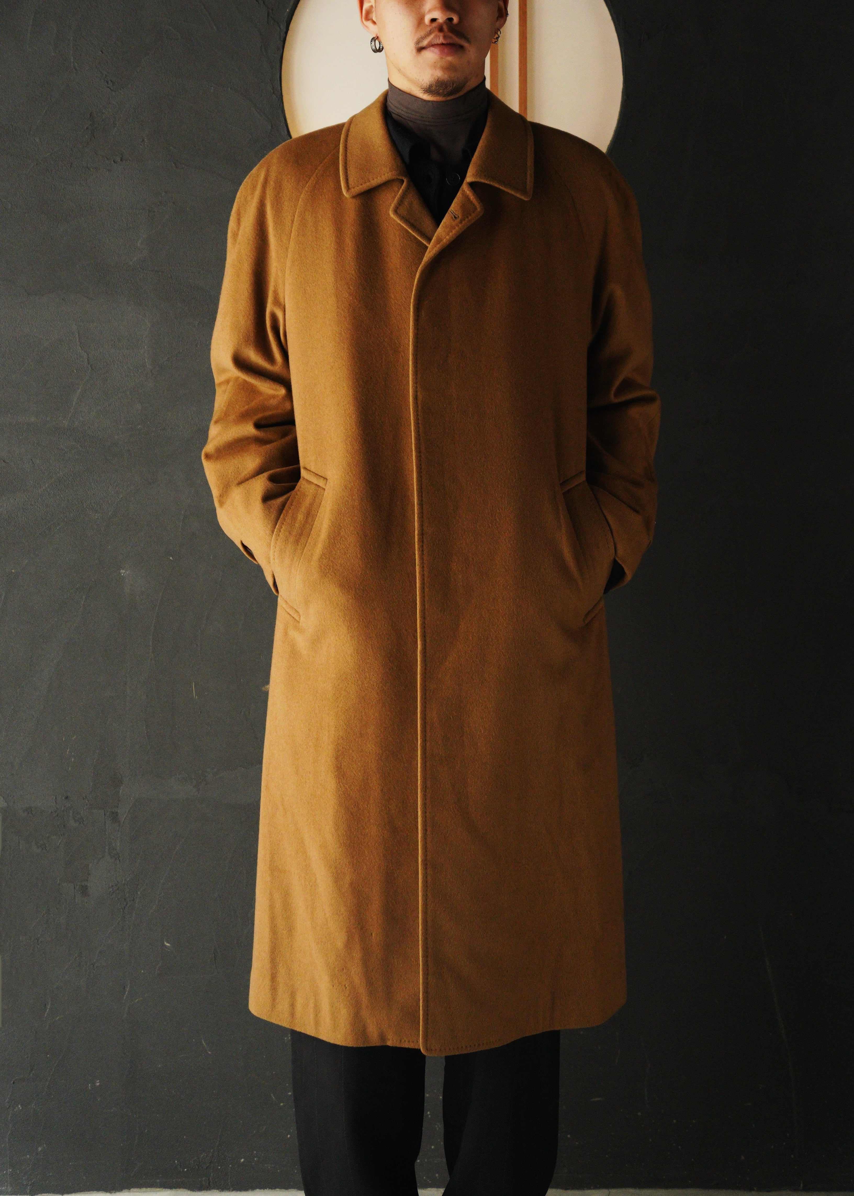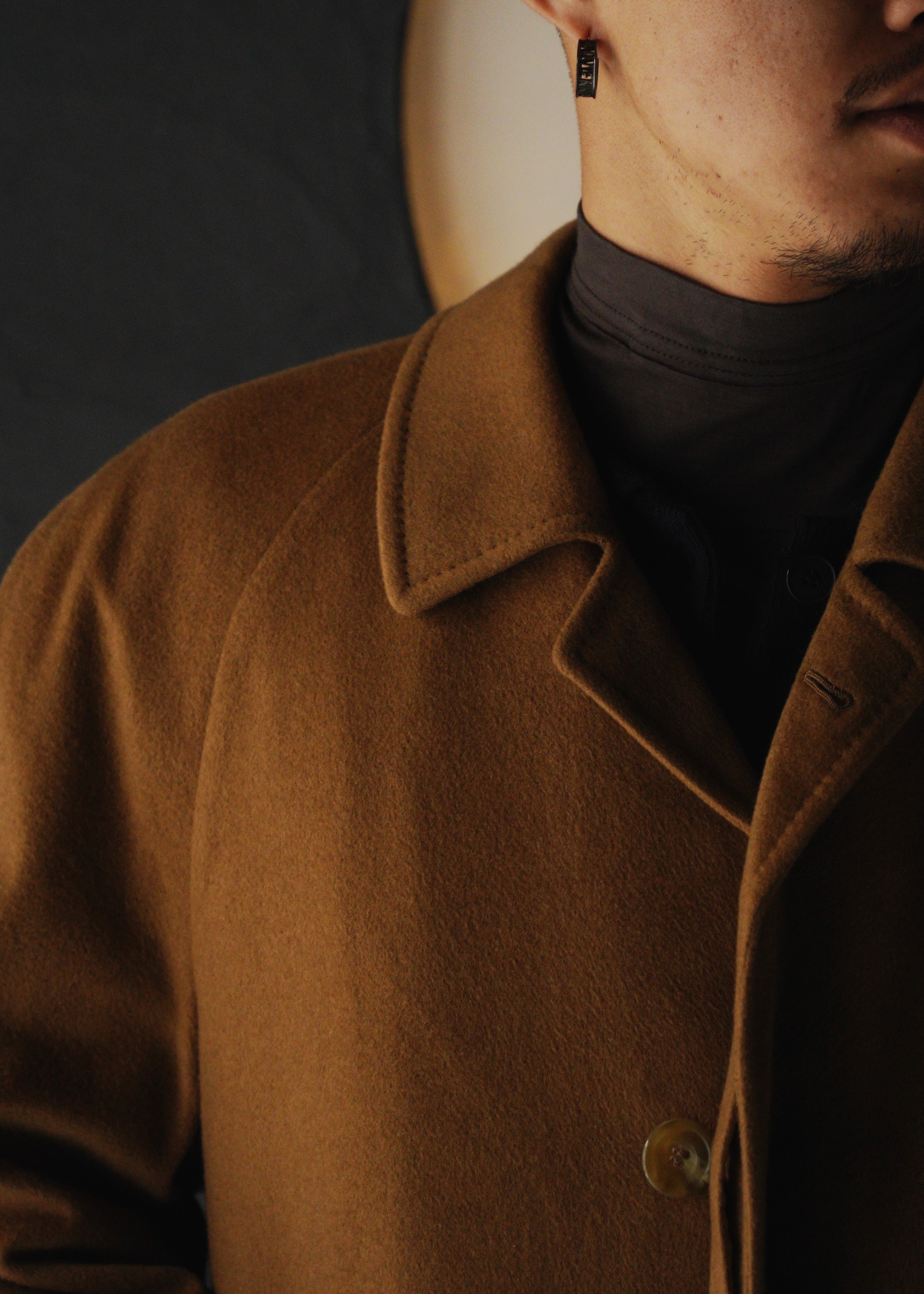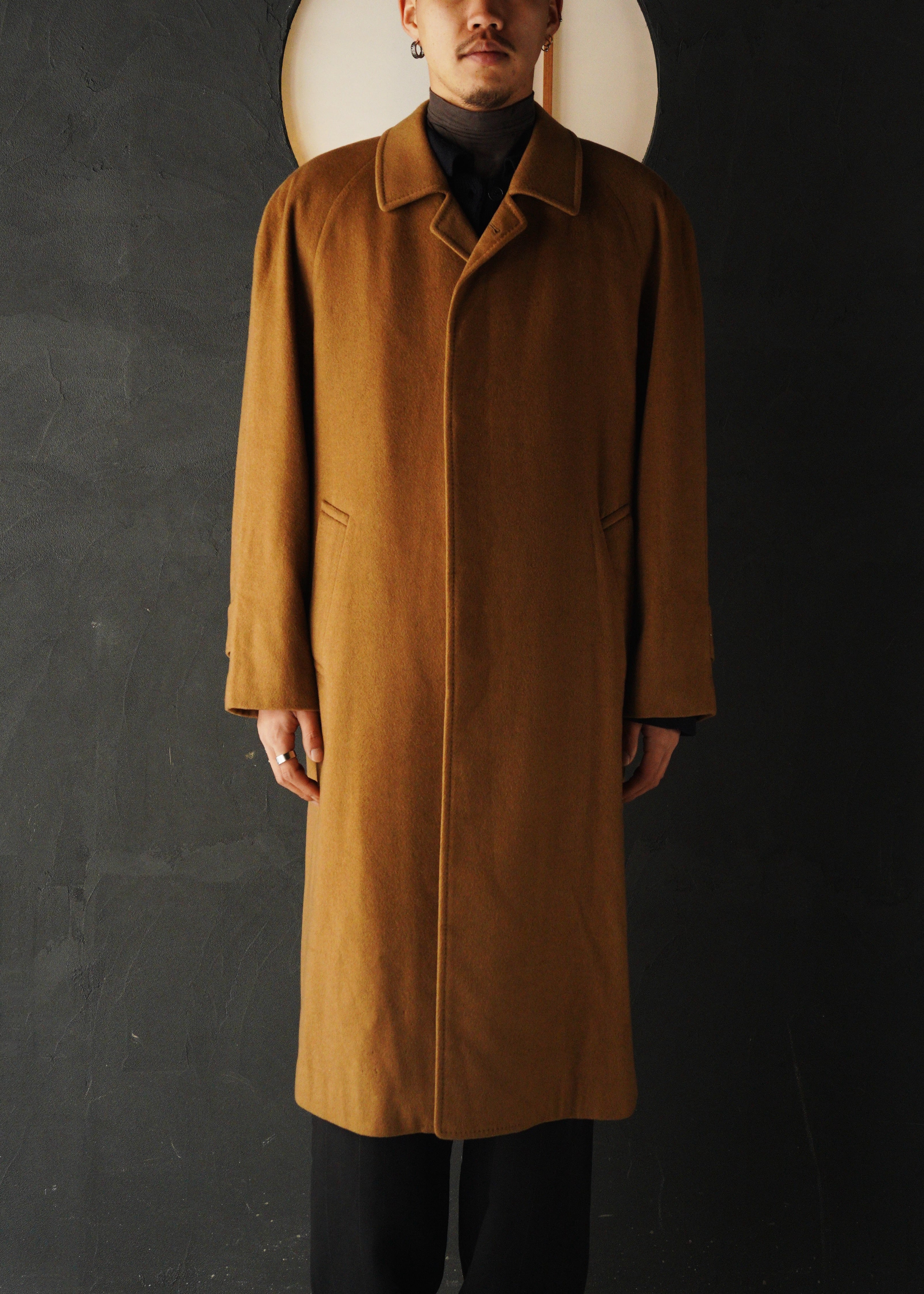 Raglan sleeve cashmere balmacaan coat
