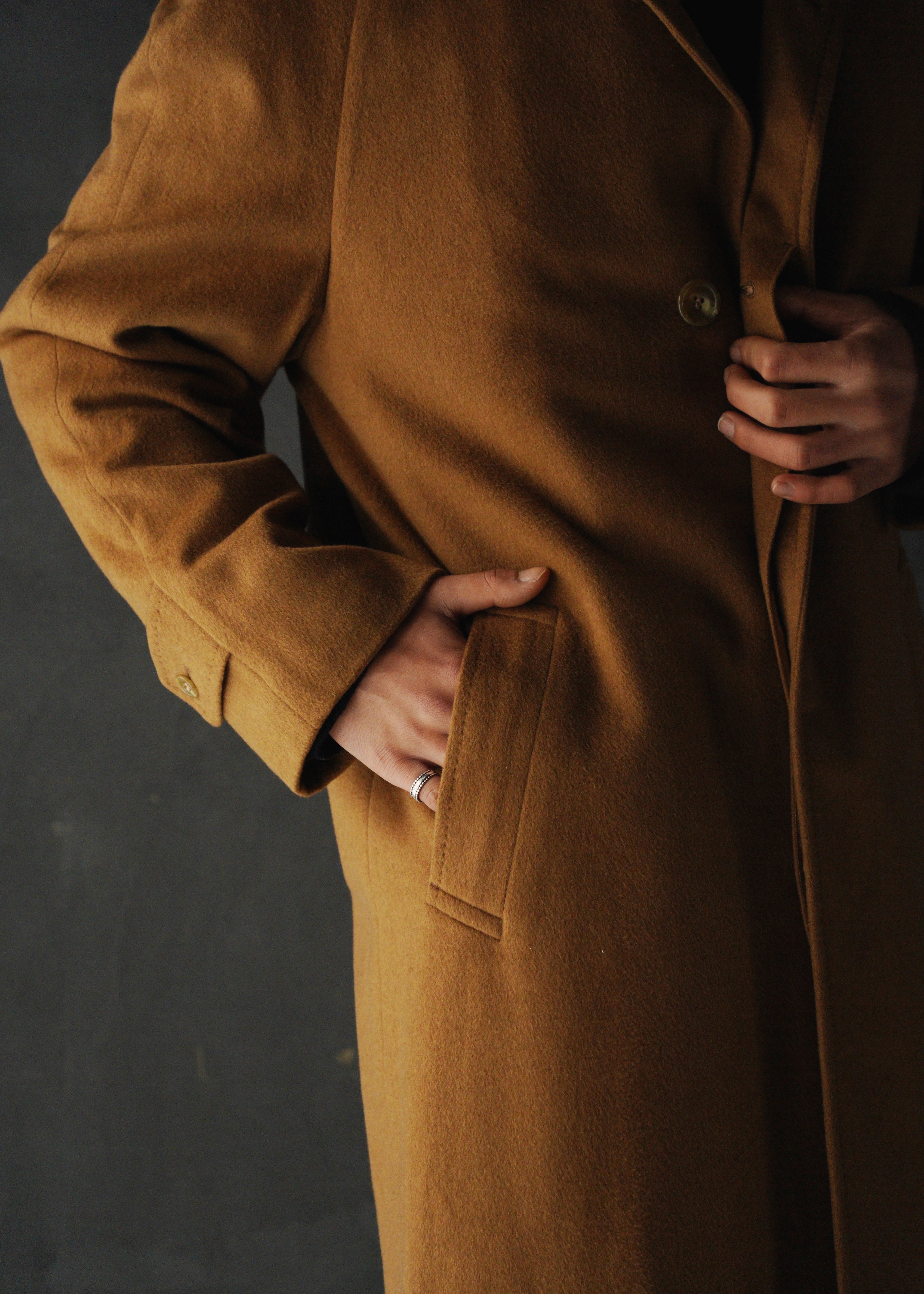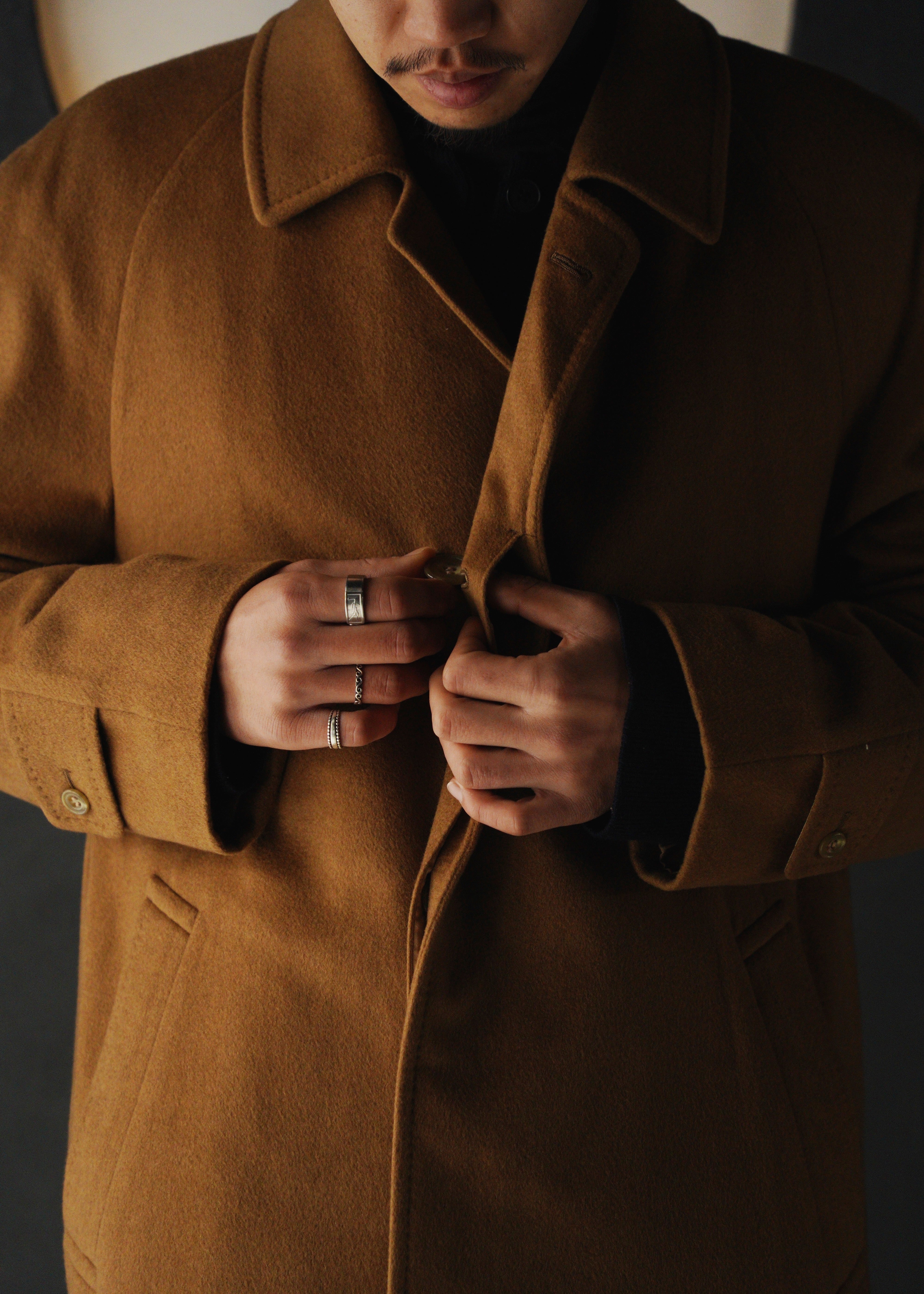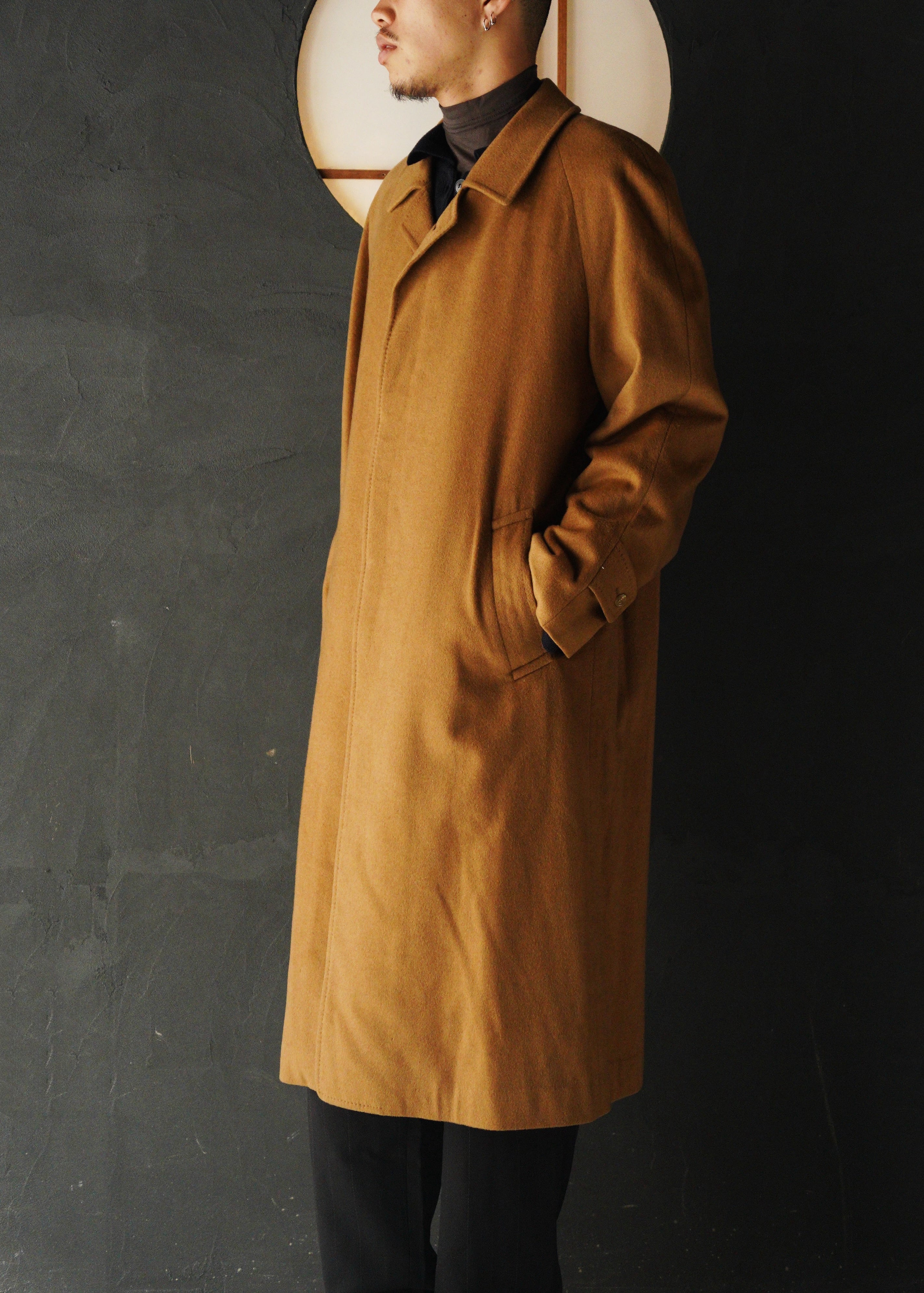 Raglan sleeve cashmere balmacaan coat