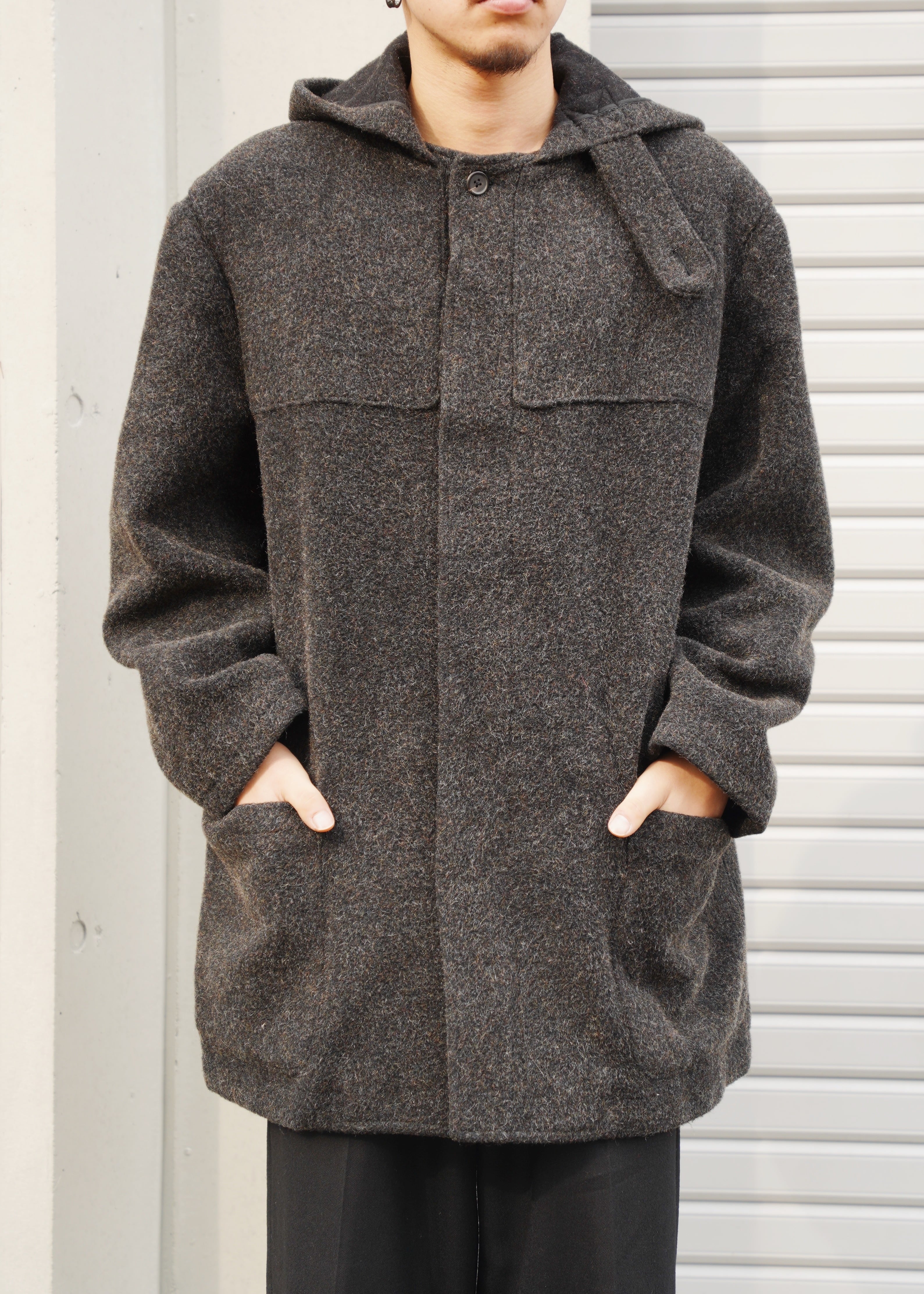 80's - Y's for men wool fly front hooded coat