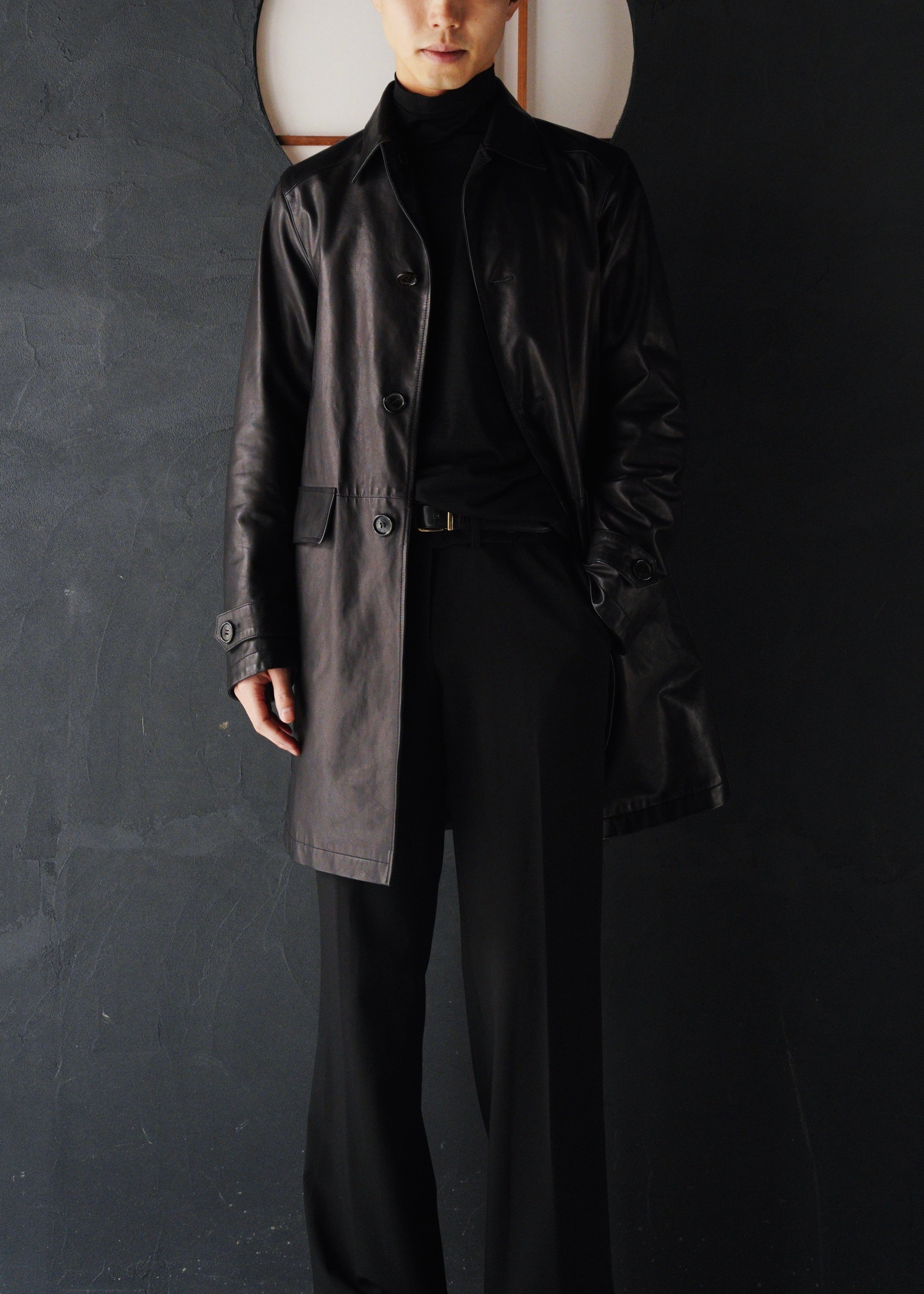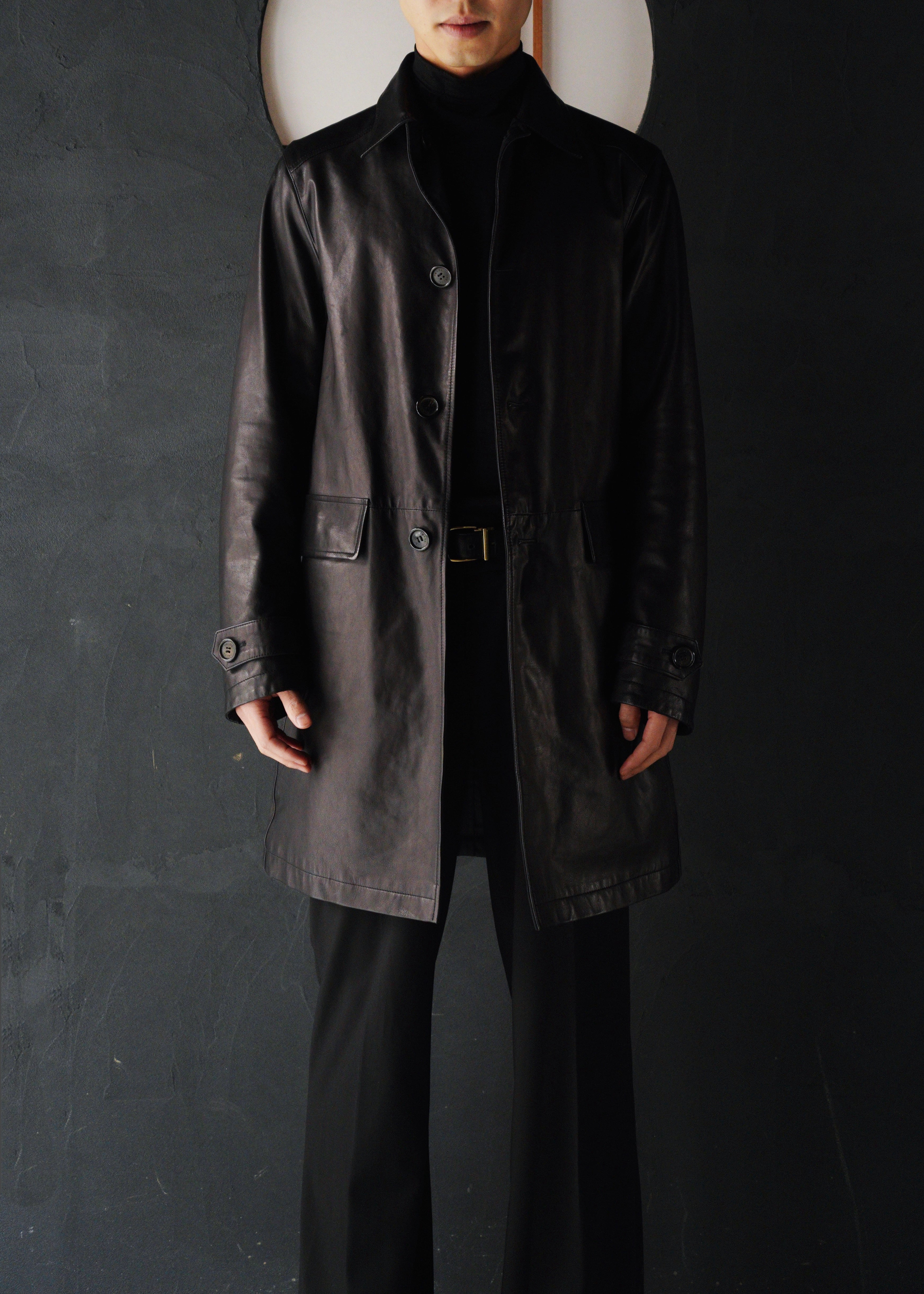 PRADA reversible leather balmacaan coat