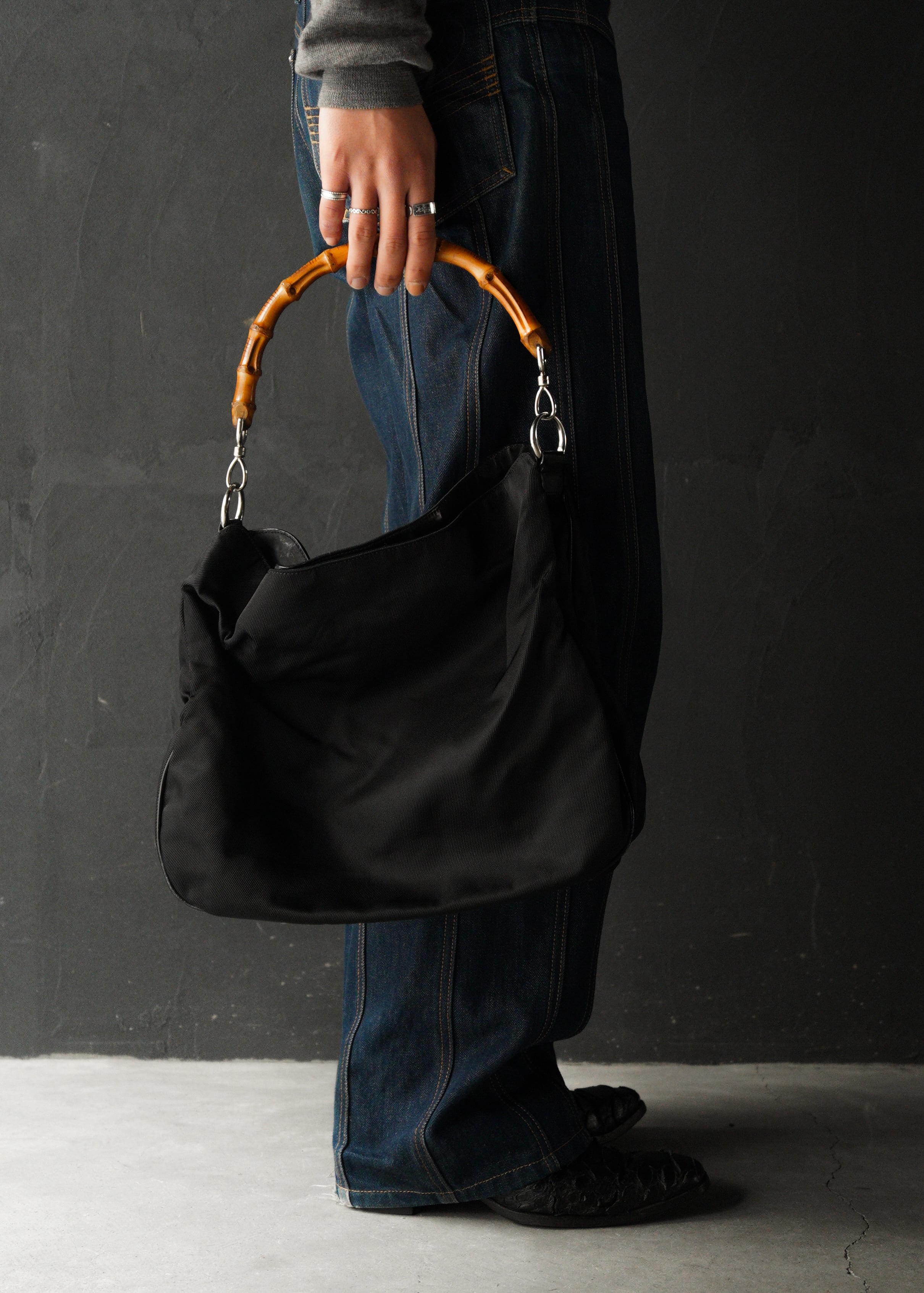 GUCCI leather piping nylon shoulder bag